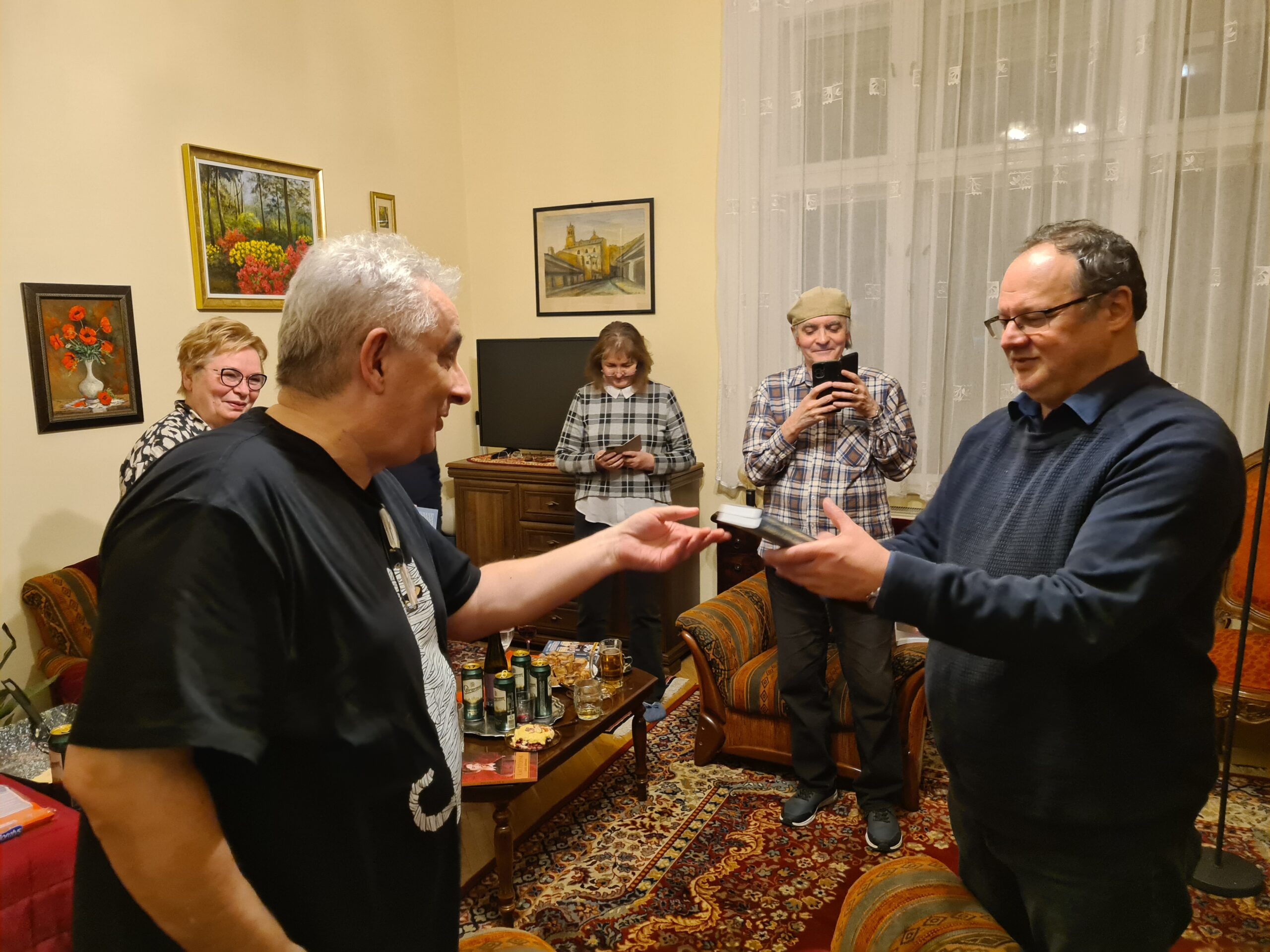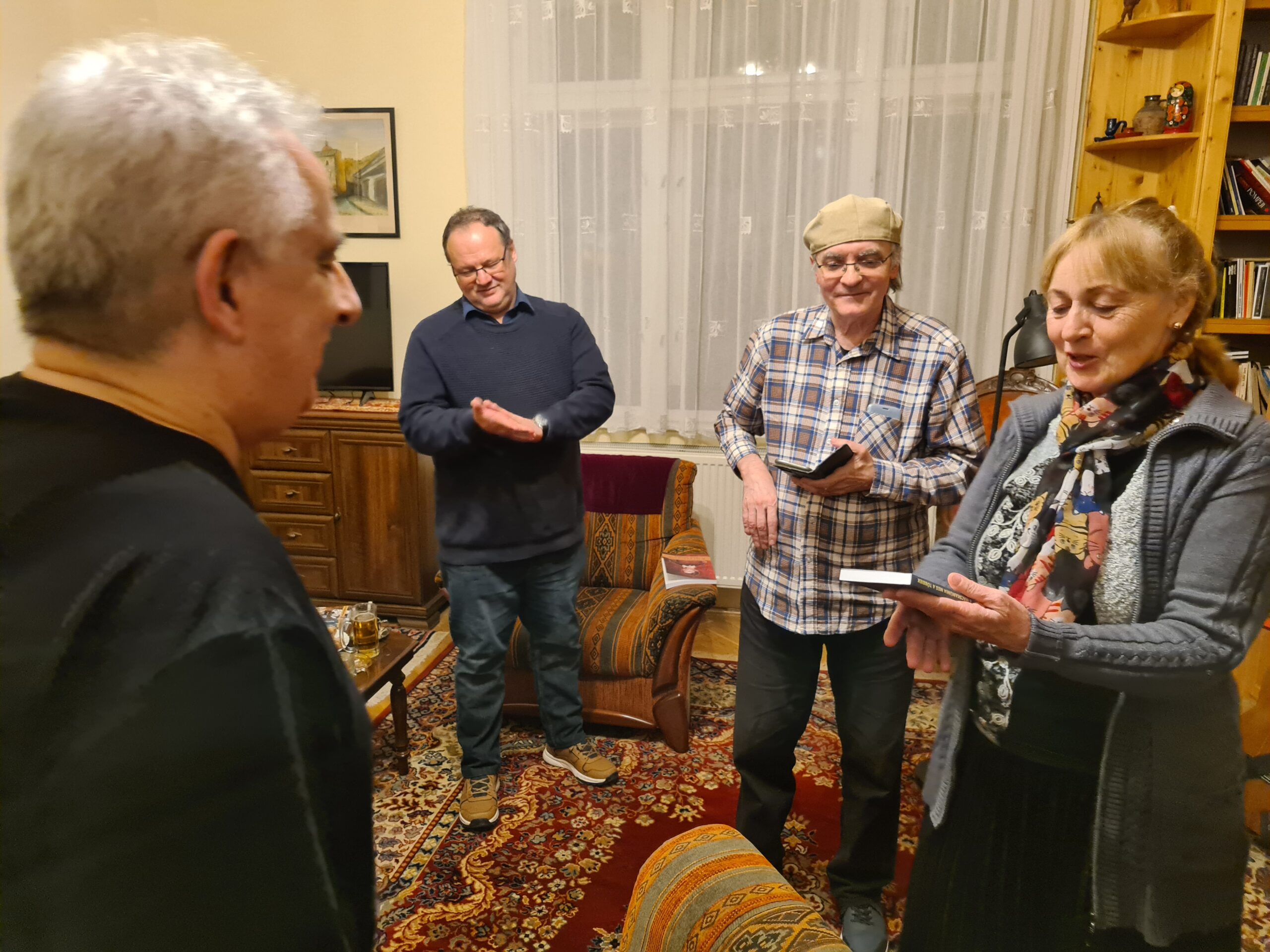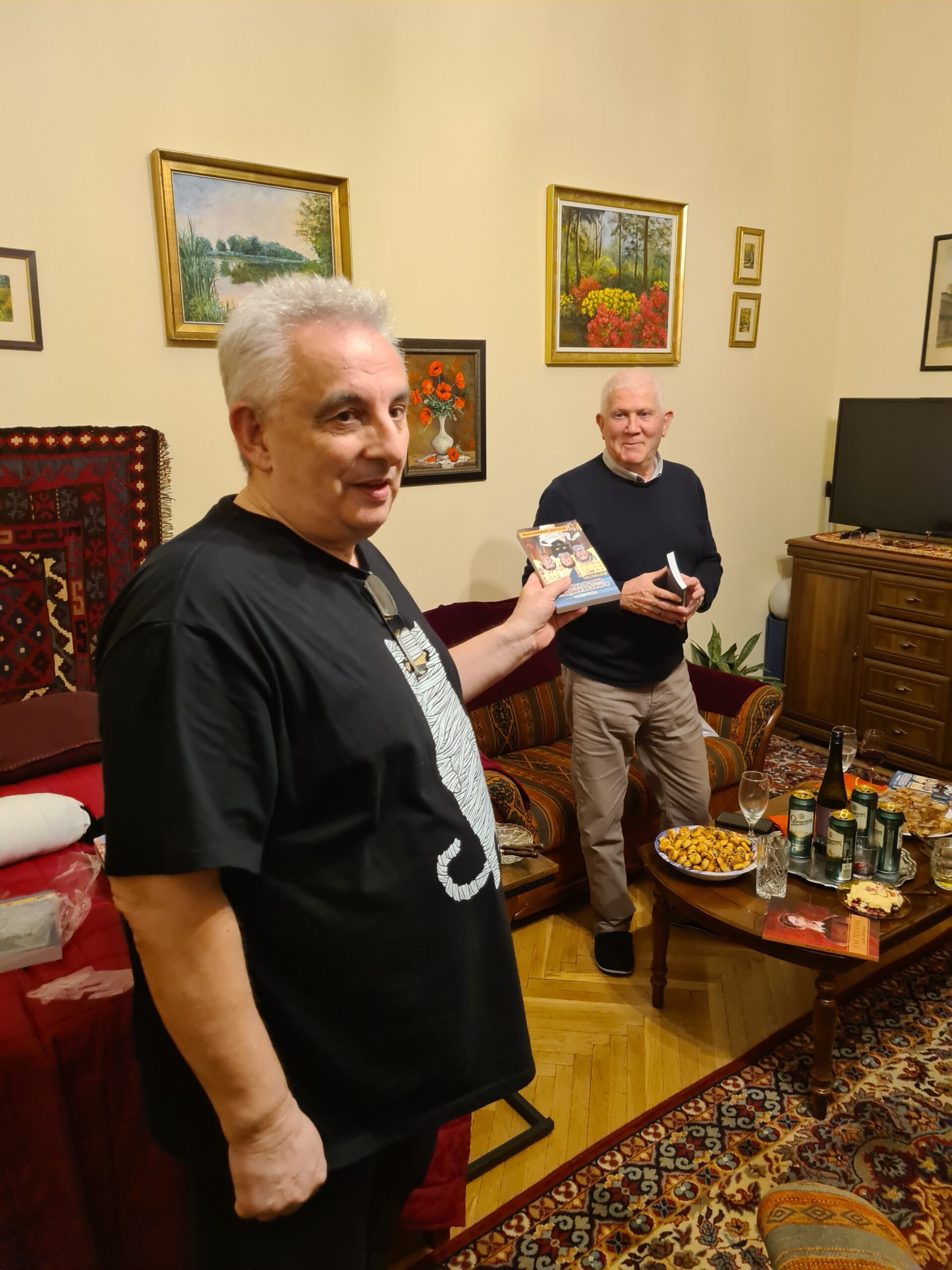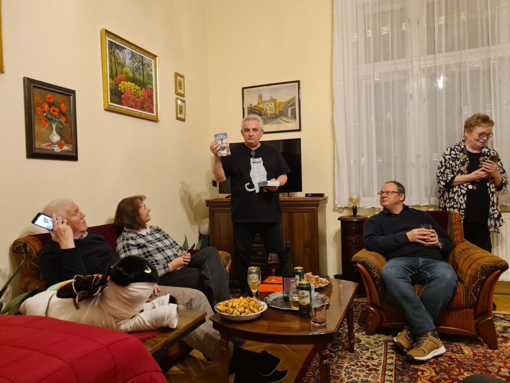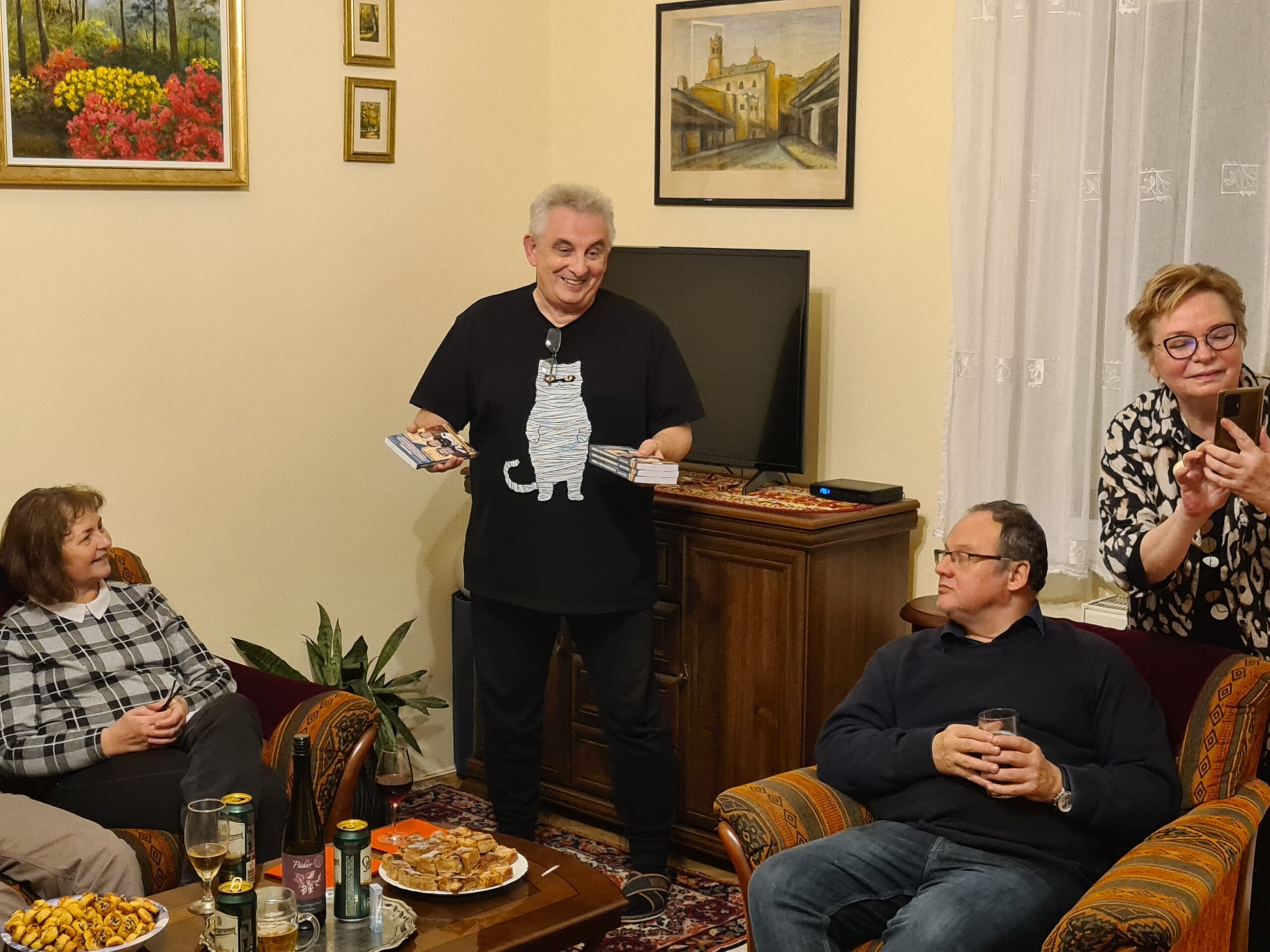 Lezajlott az emberiség írott és íratlan történelmének talán legkülönlegesebb könyvbemutatója, amelyet a szerző, Majoros Sándor lakásán rendeztek meg 2025. november 29-én, a regény szereplőinek részvételével. A kiváló hangulatú esten Friedrich Péter, Halasi Éva, Király Farkas, Lovas Lajos, Nemes Attila, Paládi Zsolt, Szappanos Gábor mint szereplő, Belley Kinga és Daniel Hermann pedig mint vendég jelent meg. A pazar vacsorával megkoronázott rendezvényt Halasi Éva a regény történésének idejéből való zeneszámok előadásával tette még színesebbé. A speciális vendég egy igazi macskamúmia volt, aki időutazásra ugyan nem bizonyult alkalmasnak, de előrevetítette a regény jövőre esedékes második részét, amely az ötvenes évekbe repíti vissza a sok kalandot megélt szereplőgárdát, a munkacíme pedig nem is lehet más, mint A macskamúmia visszatér.