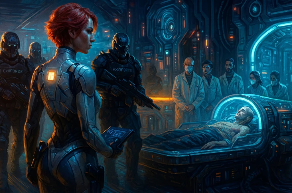 Telefonált párat, és amikor megjelent az Exoverzum Fegyveres Erő csapata a harci öltözetben, röviden ismertette nekik a tényállást. Annyit kért csak, hogy kimehessen a csapattal a helyszínre.