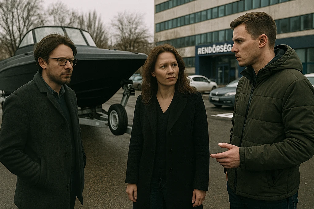Király Farkas fázósan topogott a rendőrség előtti parkolóban. A Dacia motorháztetején még gomolygott a pára, amikor Péter és Rita is befutottak egy Bolt taxival. Farkas csak pár perccel előzhette meg őket.