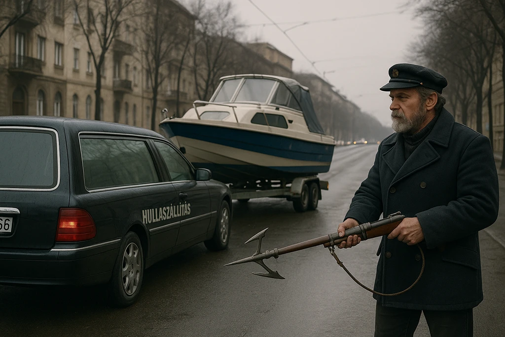 – Eszemben sincs. A gyászhuszárok szerint az eset úgy történt, hogy a hullaszállító útját a Bimbó útról hirtelen keresztezte egy dzsip, ami egy bárkát vontatott tréleren. A szerelvény lefékezett, elállta az utat, aztán kipattant belőle egy hajóskapitány, és szigonypuskát fogva rájuk elrikkantotta magát: hullát vagy életet! A gyászhuszárok úgy betojtak, hogy koporsóstól átpasszolták a hullát, amit a hajóskapitány elhelyezett a bárkán, majd sebességbe téve a dzsipet a Margit híd irányába távozott.
