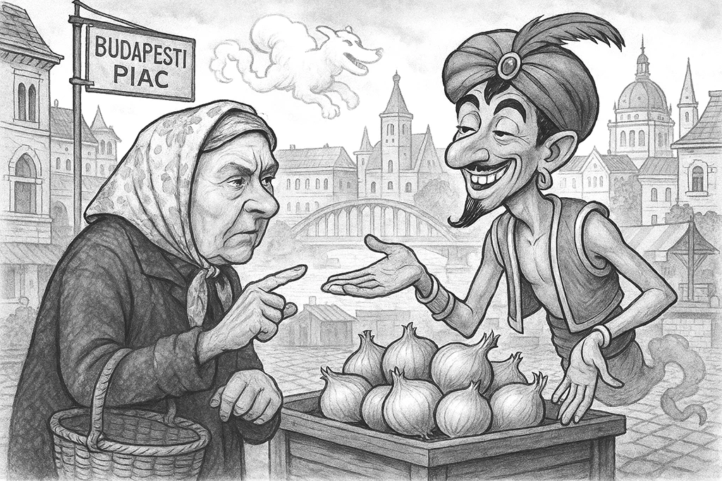 „Kati néni, ha most megveszi ezt az ukrán hagymát, extra ajándékként kap hozzá három kívánságot.”